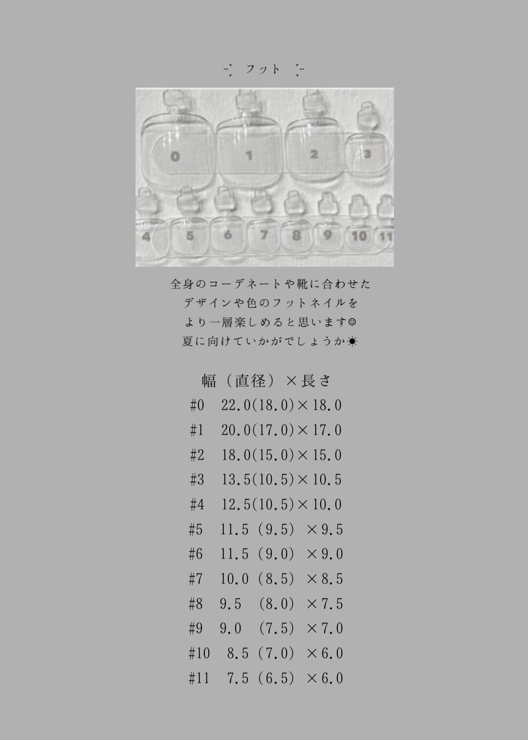 ② ご自身の爪に合うサイズ番号をメモして頂き、
